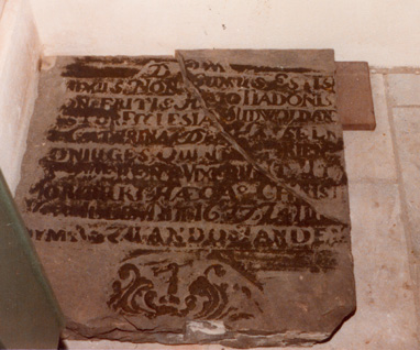 Gravestone of Hajo Tjaden (1618-1677) Pastor in Blaukirchen (1648-1677) This stone is in the church of Forlitz-Blaukirchen Ostfriesland, Germany. The epitaph is in Latin. © Bert Tjaden (family tree 3) |