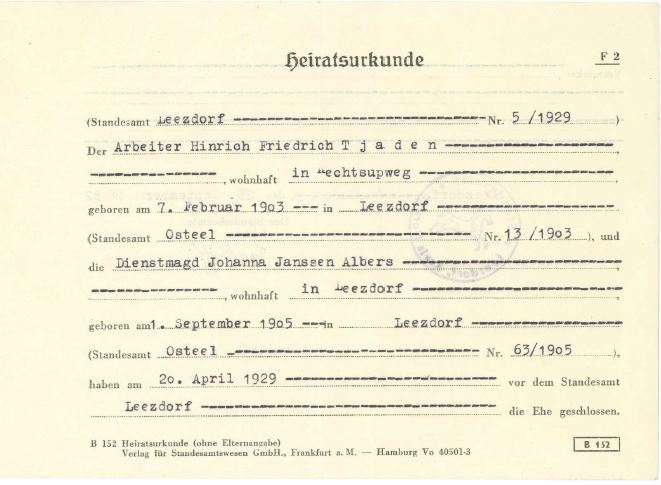 Wedding certificate Hinrich Friedrich (tree 9) |