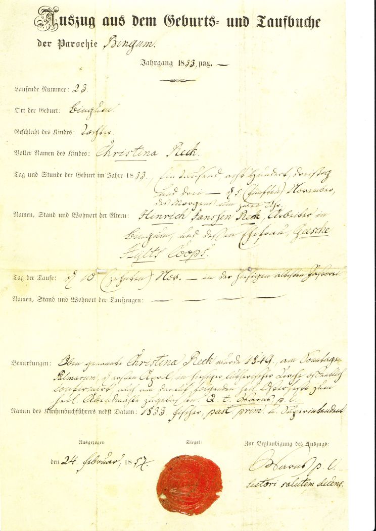 born in 1851 in Engerhafe, Ostfriesland. Tree30, page M7 |