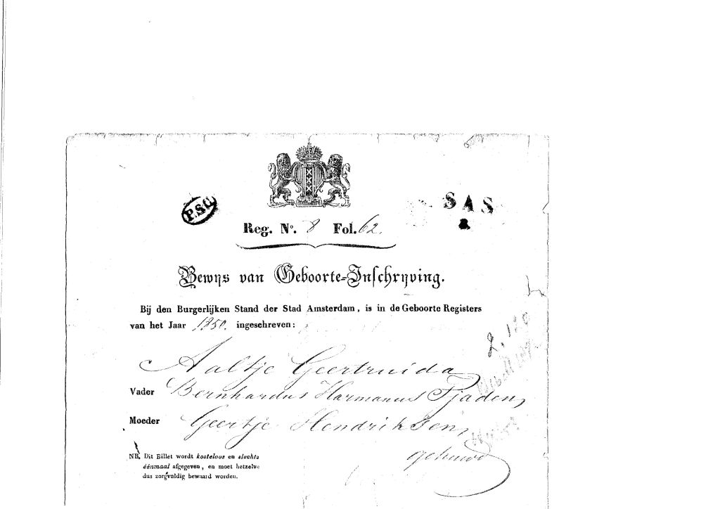 birth certificate Aaltje Geertruida © Hanny van Hoorn |